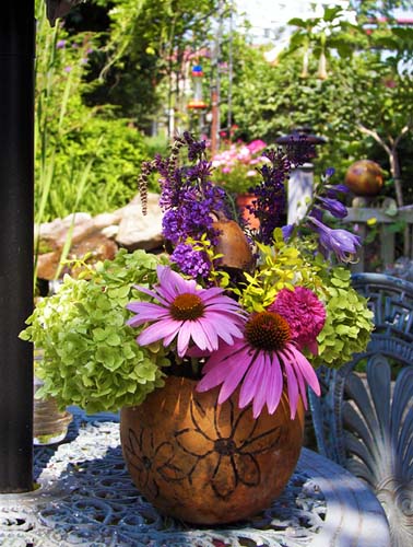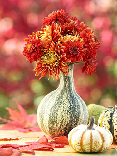 make floral arrangements with a pumpkin or gourd vase and fall flowers
